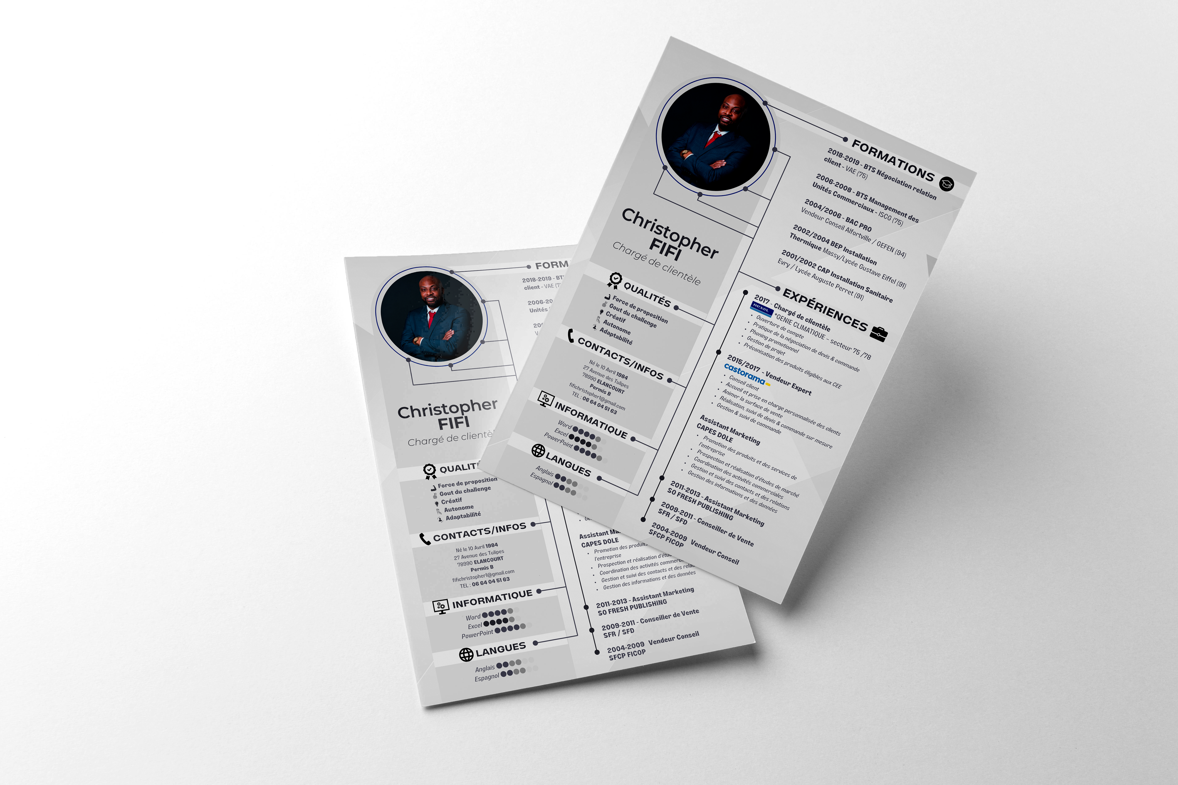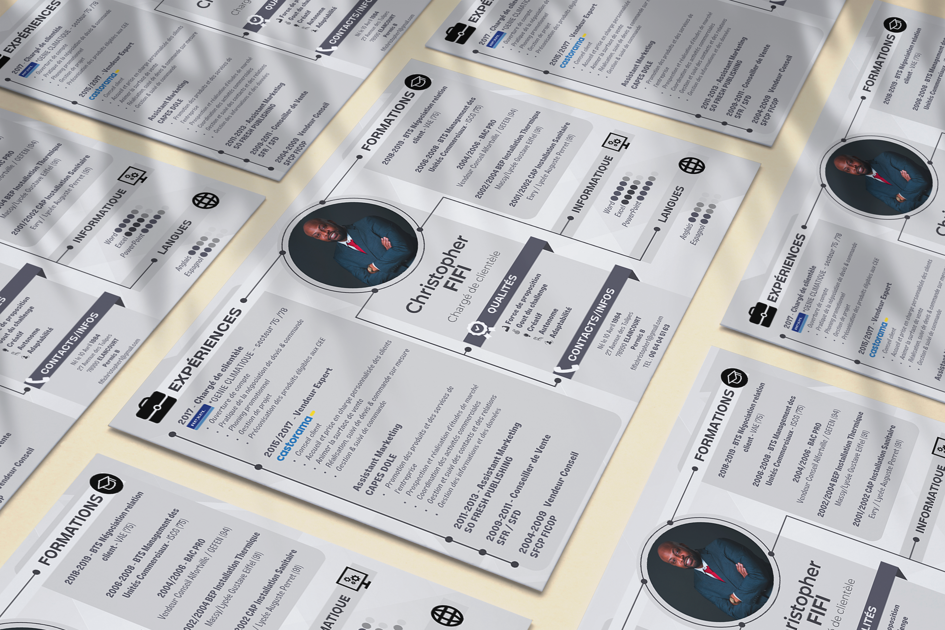 Je réalise des CV créatifs à base d'un template ou sur-mesure !